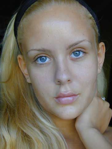 Combine esta capa con la anterior: Capa – Combinar hacia abajo (Ctrl + E) y borrar la amarillez del pelo y el cuello que es tan incómodo para los ojos, la aplicación de Imagen – Ajustes – Corrección selectiva . Corregir un poco de color de la imagen, utilizando Imagen – Ajustes – Curvas (Ctrl + M) Cambiar el color de los ojos ahora. Es necesario para esto para crear una nueva capa, aplicar el botón rápido en el Layers ventana y utilizando la herramienta Pincel para imaginarse los ojos. desenfocar un poco la capa con desenfoque gaussiano . Cambiar el tipo de la capa en la luz suave y reducir al mínimo la opacidad hasta 70% . Crear una nueva capa de nuevo y pintar los labios de la chica en ella, borrando a cabo también con Gaussian Blur . Cambie el tipo de la capa en la luz suave y reducir al mínimo la opacidad hasta el 60% . Tome otro instrumento ahora herramienta Cuentagotas y haga clic en el más oscuro colocar en las pestañas para copiar el color. Delinear los ojos en una nueva capa, utilizando la herramienta Pincel . Cambie el tipo de la capa en la luz suave también. Entonces imaginar las sombras en una capa nueva. Desenfoque ellos demasiado. Cambie el tipo de la capa de color de la quemadura .