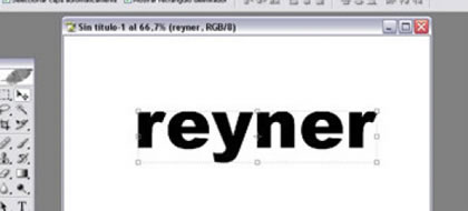 Seguido de tener el texto listo, a continuación precederemos a «rasterizar la capa» (el menú se abre dándole click derecho al layer «reyner» en la ventana de layers. Ahora el objeto dejó de ser texto y se convierte en un objeto normal (lo que quiere decir que ya no lo puedes editar textualmente).