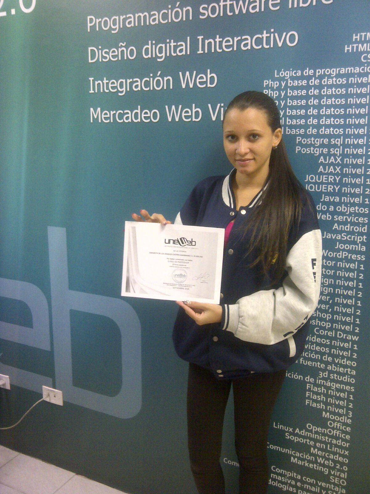 «Ganadora del Primer lugar, en el «Programa Líderes Socialmente Responsable», llamado «Reto U», ganó y culmino el curso Photoshop nivel I. Participa tú también: https://es-es.facebook.com/elRetoU